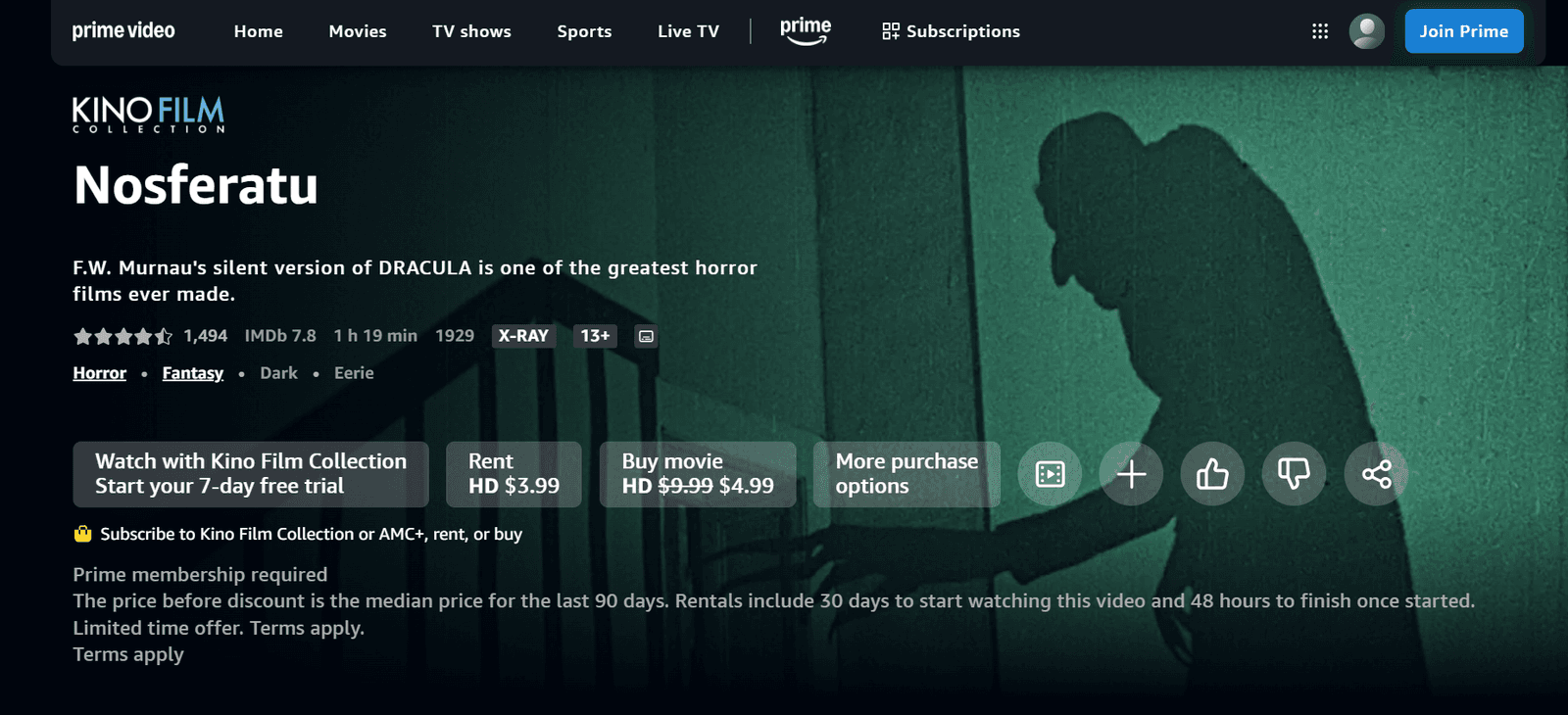 Amazon Prime Video is included with an Amazon Prime subscription. As of 2025, Prime Video is also available as a standalone subscription at a lower price tier, or with an ad-free add-on option in markets where ads have been introduced.